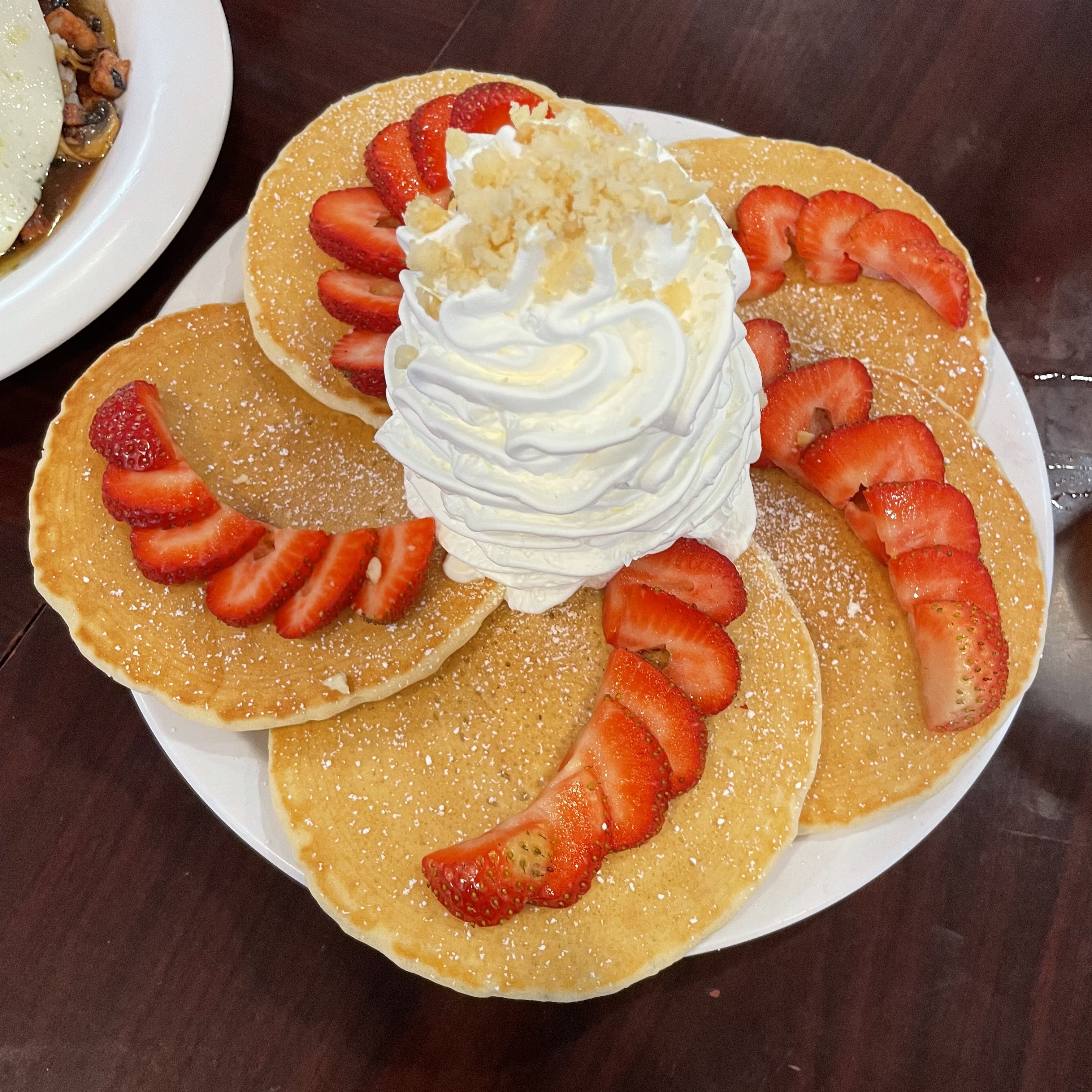 에그앤띵스는 하와이에서부터 맛집으로 아주 유명한 곳이기도 합니다. 하와이, 괌과 많은 인연이 깊은 일본인들은 애그앤띵스를 무척 좋아하며 일본 현지에도 체인점이 많이 있다고 합니다. 에그앤띵스의 주요 메뉴는 핫케이크와 로꼬모꼬입니다. 딸기와 휘핑크림이 잔뜩 올라간 핫케이크와 로꼬모꼬는 이곳을 방문하는 모든 사람이 주문한다고 봐도 과언이 아닙니다. 미국적인 맛이라고 볼 수 있는 이 핫케이크는 양이 아주 많습니다. 로꼬모꼬는 일반적으로 알고 계시는 맛과 같습니다. 사실 하와이 에그앤띵스를 무척 사랑하는 편인데, 괌에서 먹는 맛은 그 맛이 나지 않아 개인적으로 아쉬웠습니다.