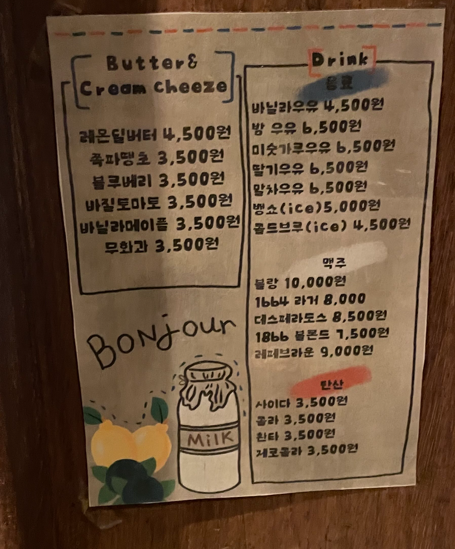 바게트가 저렴한 편은 아니에요. 그리고 무조건 1인 1바게트나 샐러드를 주무해야합니다!