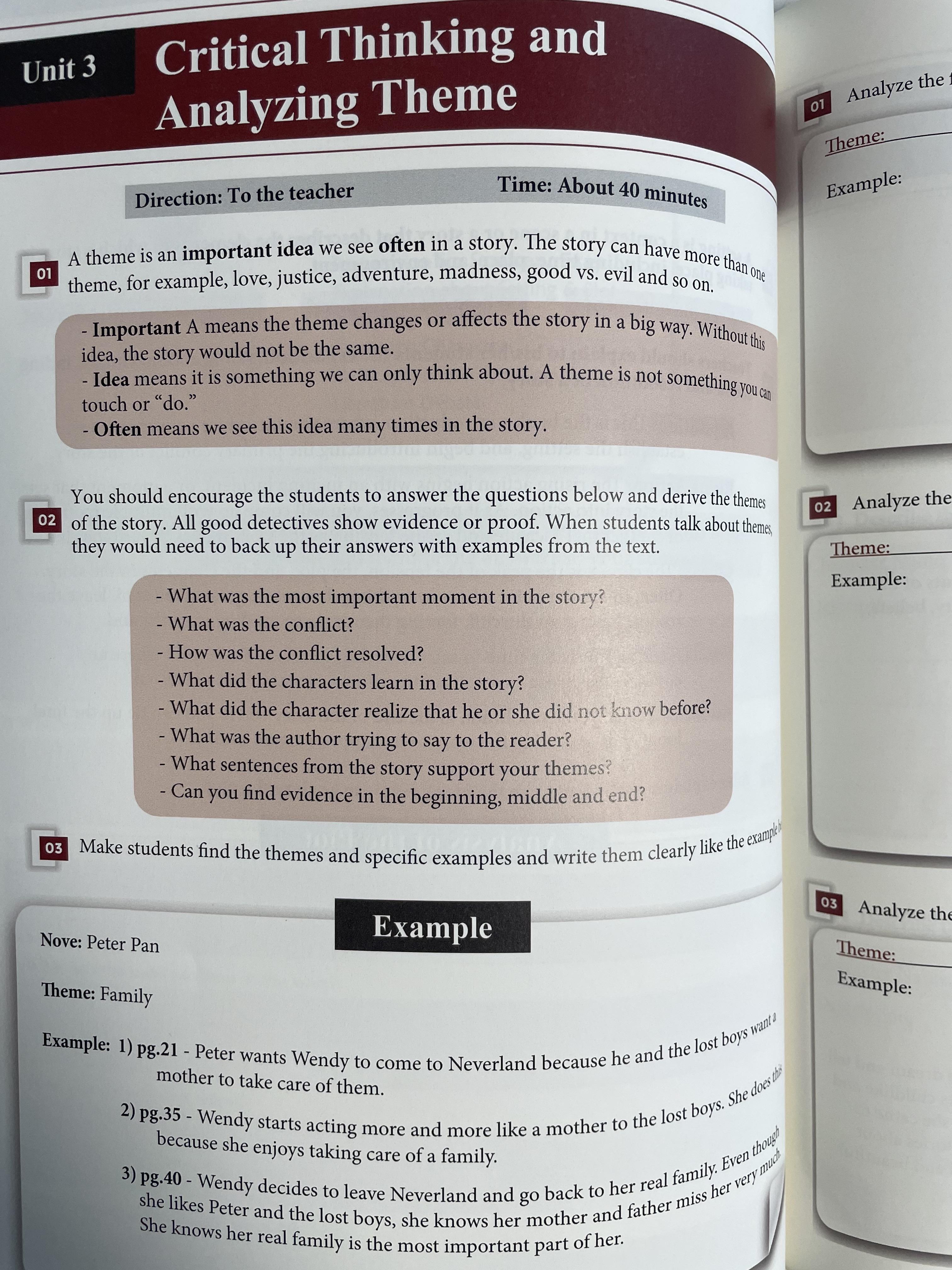 교재에서 먼저 틀을 잡고 노트에 에세이를 쓰게 됩니다.