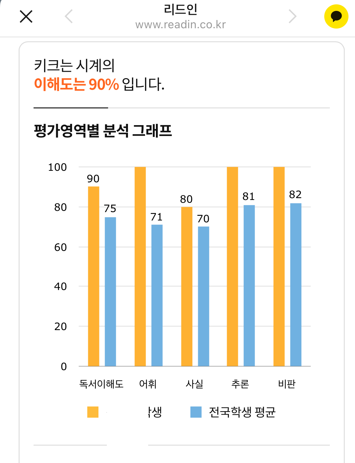 수업이 끝나면 바로 그날 읽은 책의 점수표가 카톡으로 전송됩니다.
