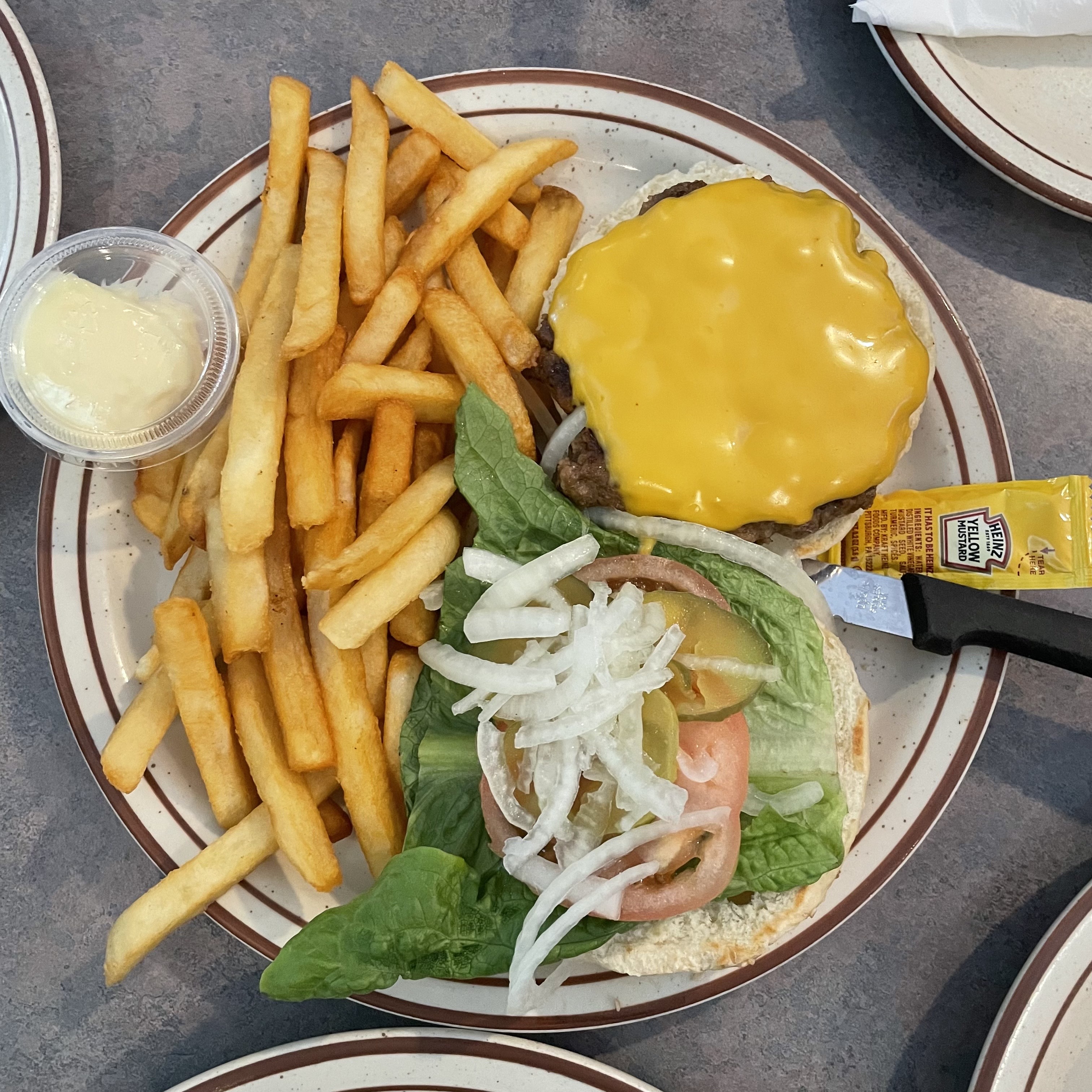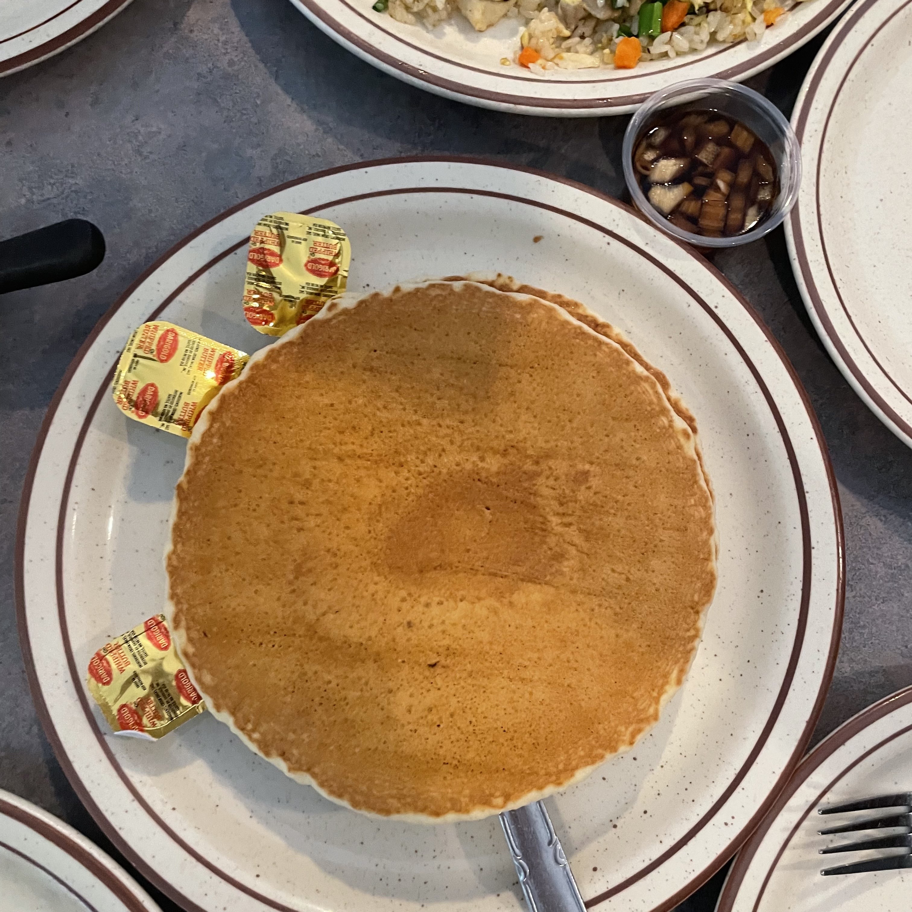 버거, 볶음밥, 핫케익을 먹고 반은 포장해왔네요.ㅋㅋ