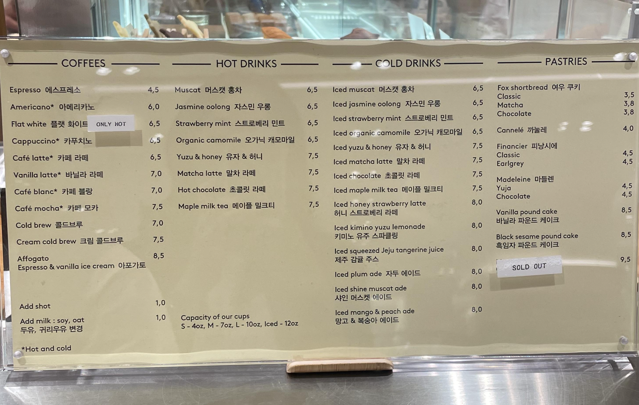 따뜻한 라떼에는 메종키츠네의 여우가 올려진다고해서 주문해봤는데 올려져 있지 않아서 아쉬웠습니다:)