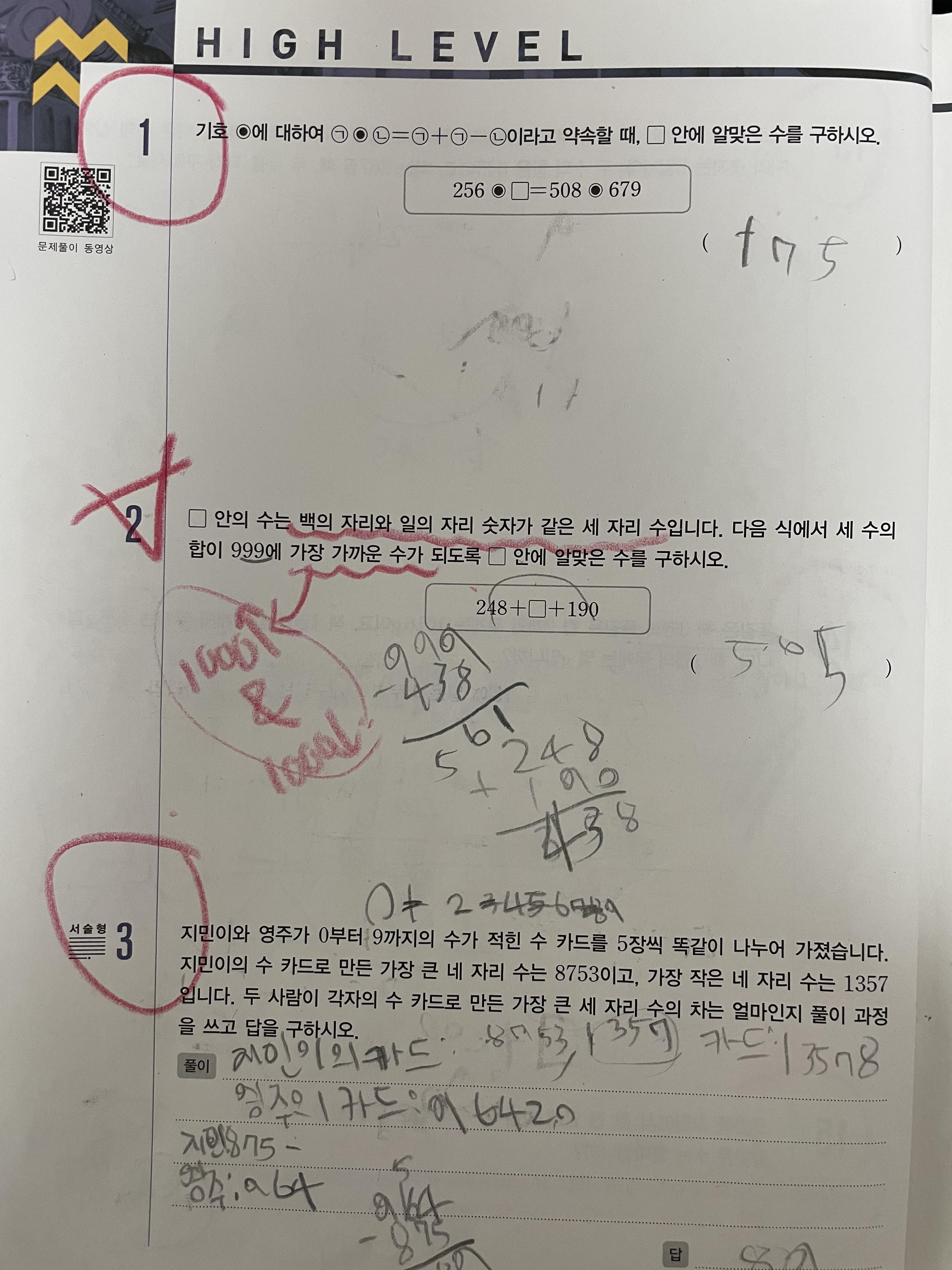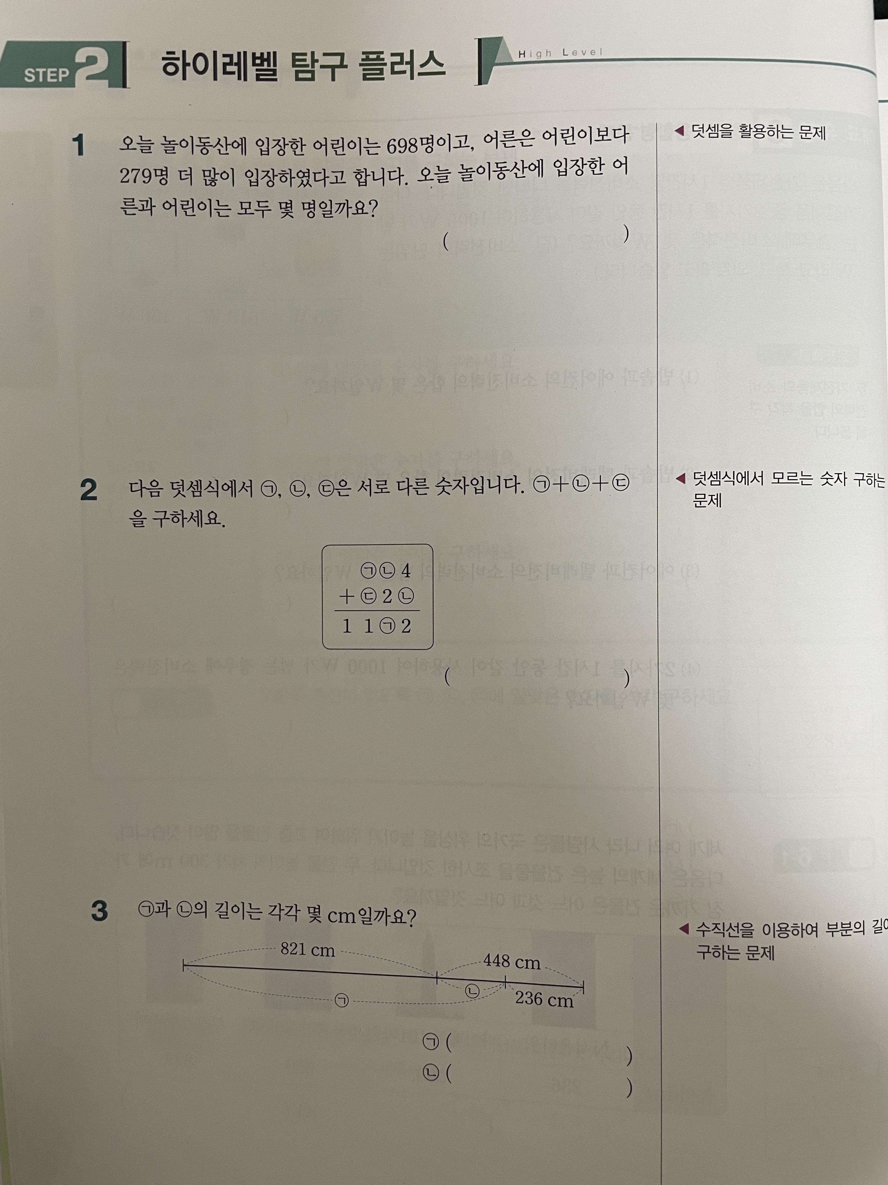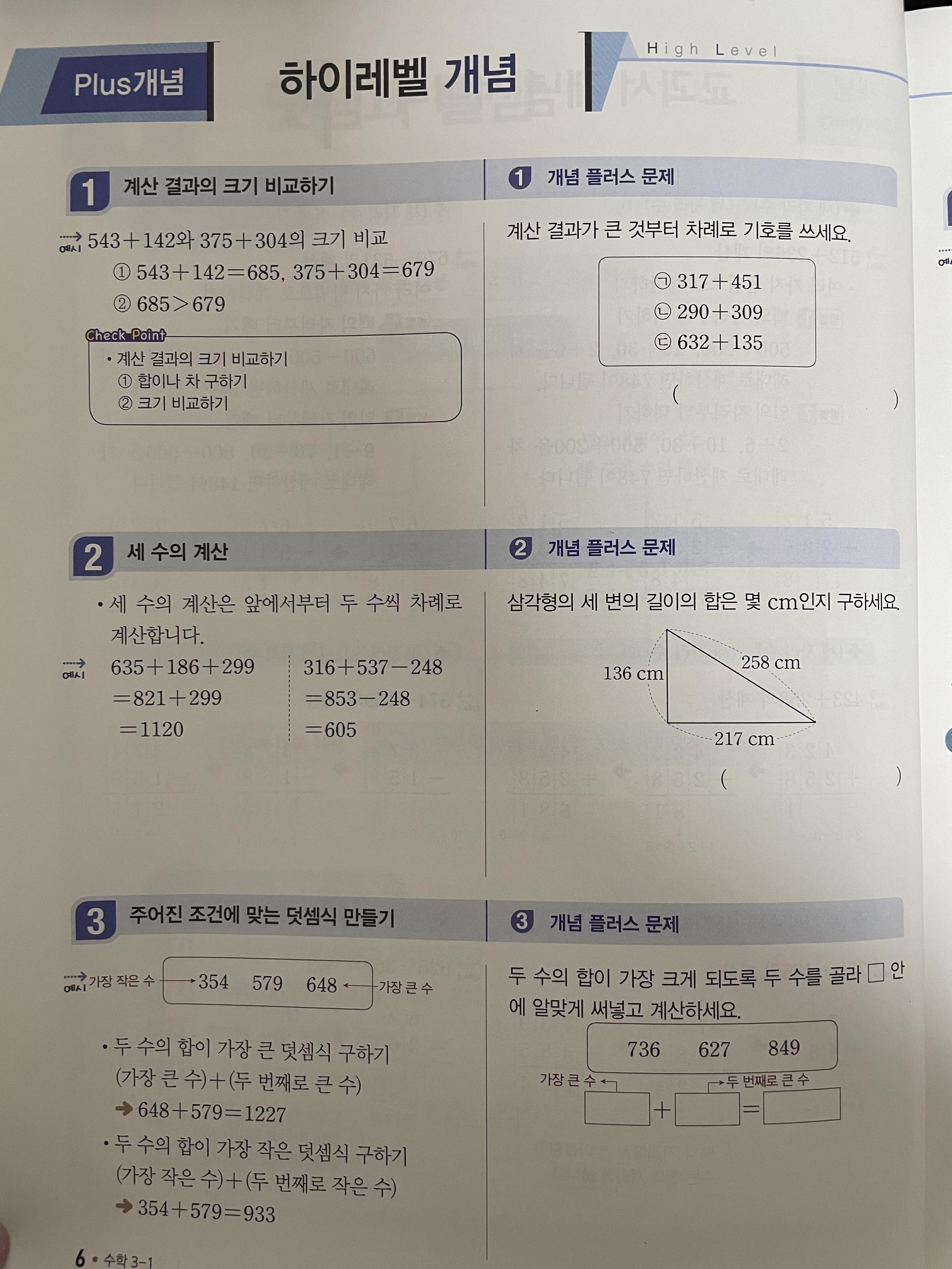 디딤돌 최상위 수학은 수많은 학원 교재로도 사용되며 많은 사람들에게 인기를 받는 문제집입니다. 보통 저학년는 기본응용 , 최상위 수학을 순서로 많이 풀어 냅니다. 3학년 이후 부터는 기본서, 유형서, 심화서 순으로 3권씩을 푸는 로드맵을 따릅니다. 최상위 수학은 먼저 BASIC CONCEPT라는 부분에서 기본문제들을 제시합니다. 다음 차례인 MATH TOPIC에서는 심화유형 문제들을 각유형별로 3-4문제를 풀어보면서 유형을 익혀 나갑니다. 그후, LEVEL UP TEST에서 심화 유형 보다는 조금더 심화가 가미되어진 문제를 제시합니다. 그 후 마지막 단계인 HIGH LEVEL에서는 경시에 나올 법한 문제들이 제시됩니다. 실제 경시 제출 문제도 1-2문제가 함께 제공될 때도 있습니다.