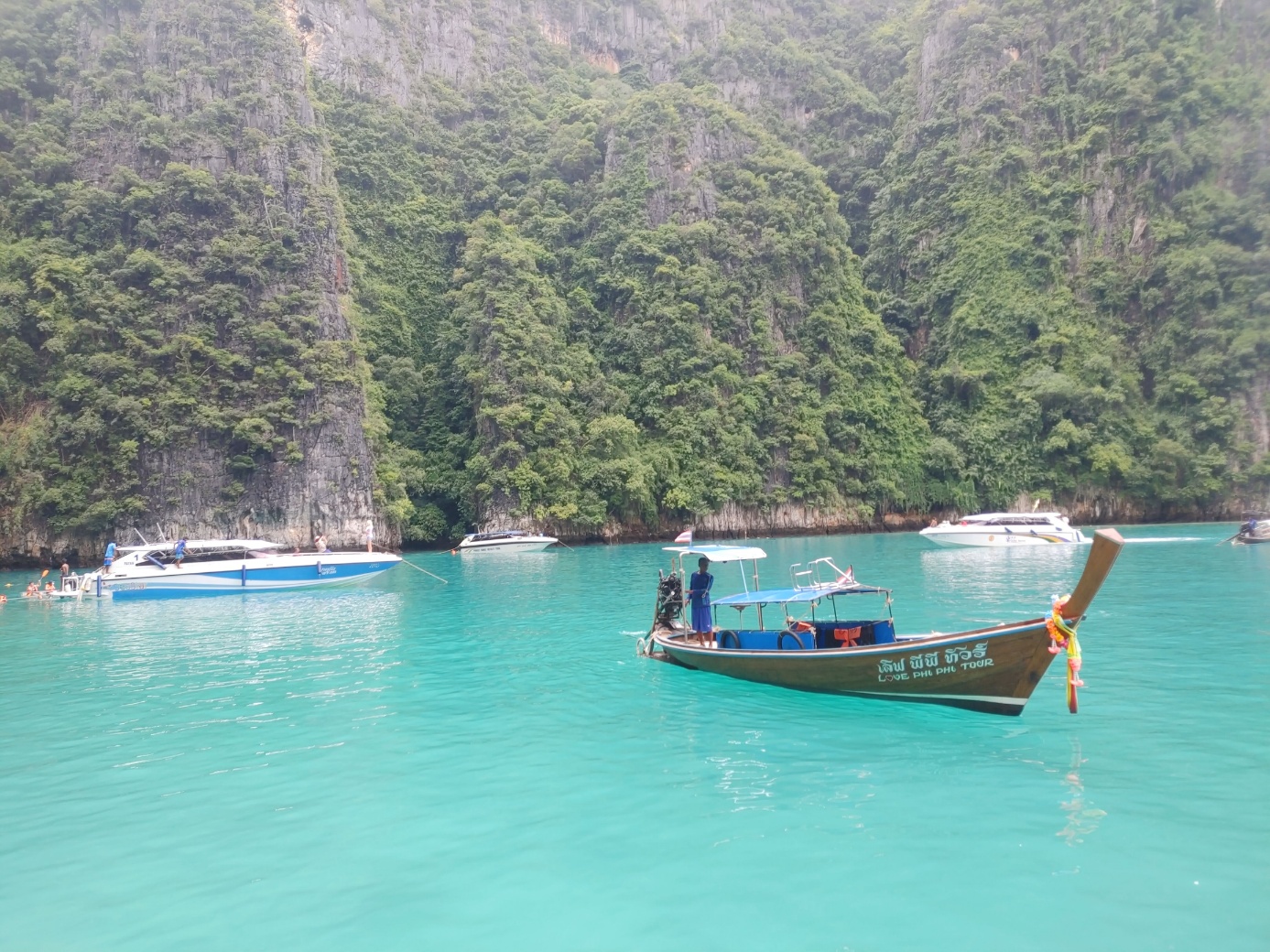 순서대로 탑승준비를 합니다. 통통배는 타고 싶은 사람만 돈을 내고 탑승할수있습니다. 사람수에 돈을 계산하지 않고 통통배 한대당 계산을 하기때문에 사람수를 맞춰서 돈을 나눠내고 탑승하면 됩니다. 인원수제약이 있습니다. 이동후 피피섬 똔사이해변 식당에서 뷔페식으로 간단하게 식사를 합니다. 자기가 먹을수있을만큼 음식을 덜어서 먹구요 바로앞 해변에서 자유시간을 가지게됩니다. 이곳은 전부 바다가 에메랄드빛 색깔이며 멋진 사진을 찍을수있는곳입니다. 스노클과 바다수영을 즐길수있습니다. 해변에는 비치체어가 준비되있어서 간단하게 짐보관을 하고 물놀이를 즐길수있습니다. 생각보다 물이 많이 짤수있습니다.