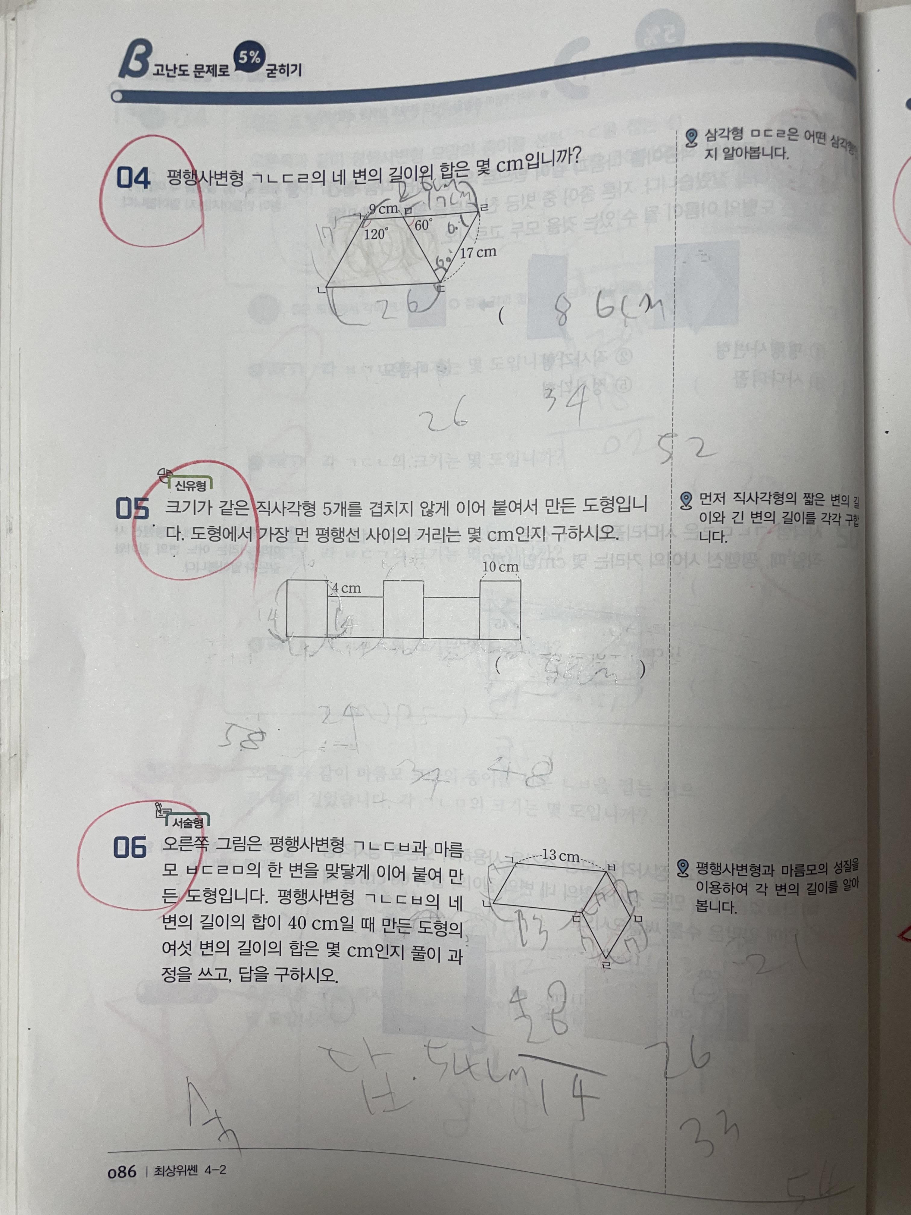 4-1과 4-2의 문제집에는 차이가 있는데 4-1 진행 후 문제집을 변경해서
