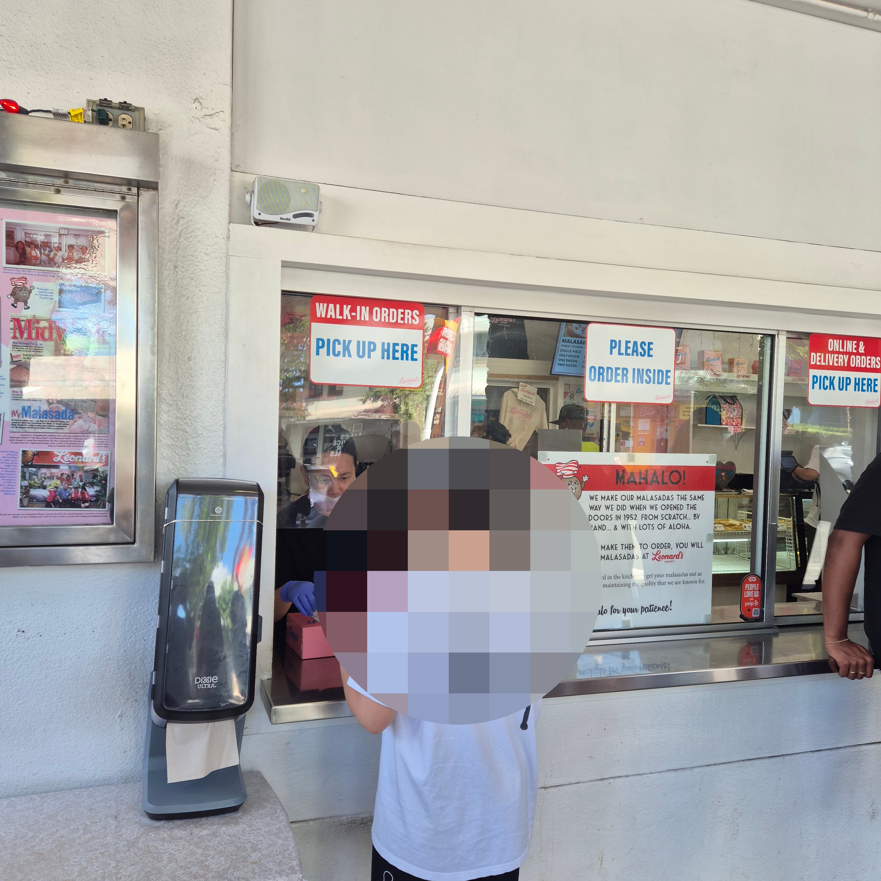 많은 사람들과 같이 맛있는 도넛을 기다리면서시간이 좀 흘렀구요 픽업 번호를 불러서 맛있는 도넛을 찾으러 창구로 갔습니다. 도넛은 매장안에 진열되어 있지 않았고 안쪽에서 만들어서 따로 가져오는 것 같아 보였습니다.