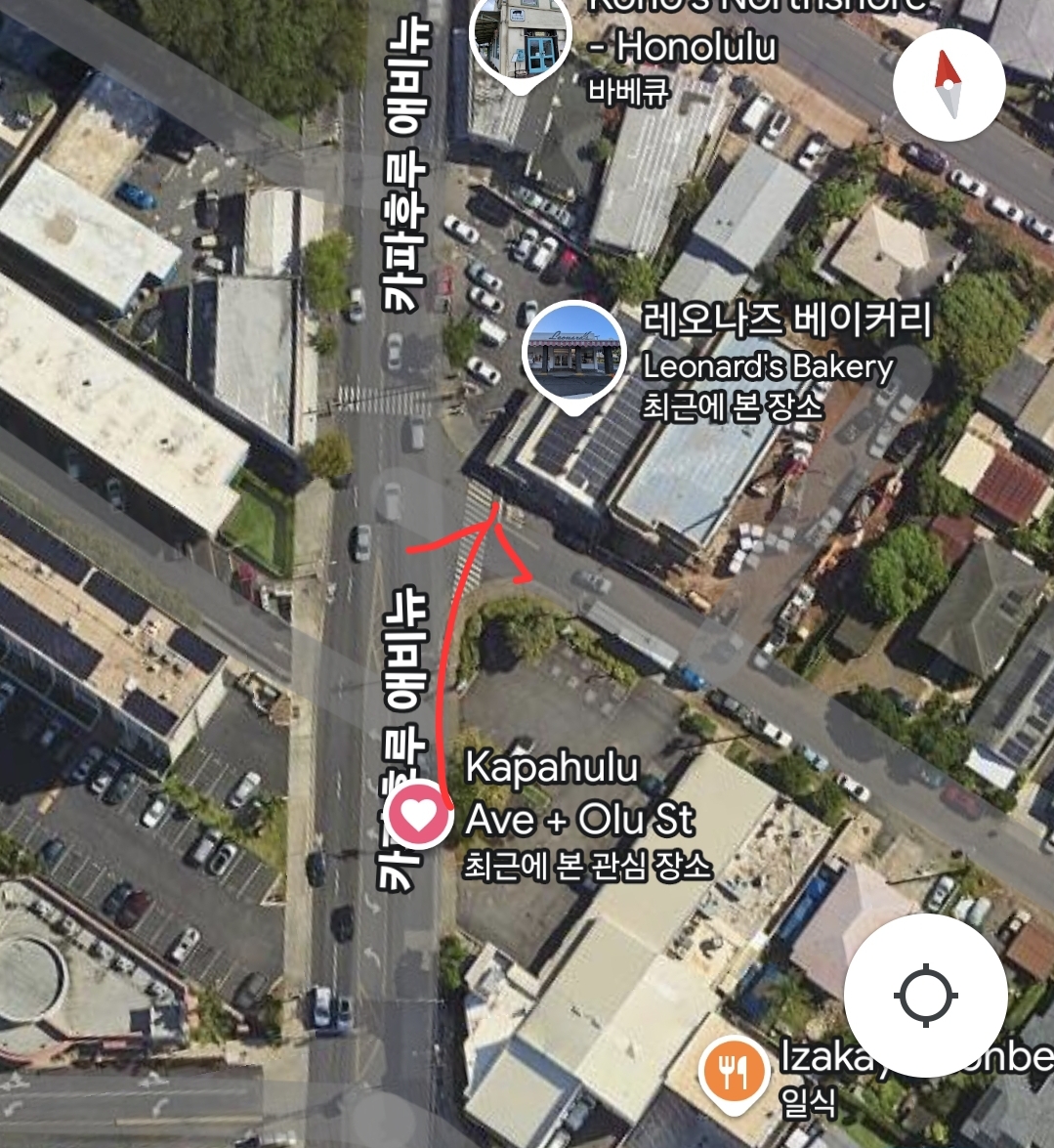 구글지도를 첨부해드렸는데요 호놀룰루 동물원 주차장에서 레오나즈베이커리까지는 거의 일직선입니다. 그냥 쭉 직진만 하면 되는 길입니다.찾아가기 너무 쉬워요~ 이쪽길에서 위로올라가는 버스 13번을 타시면 됩니다.