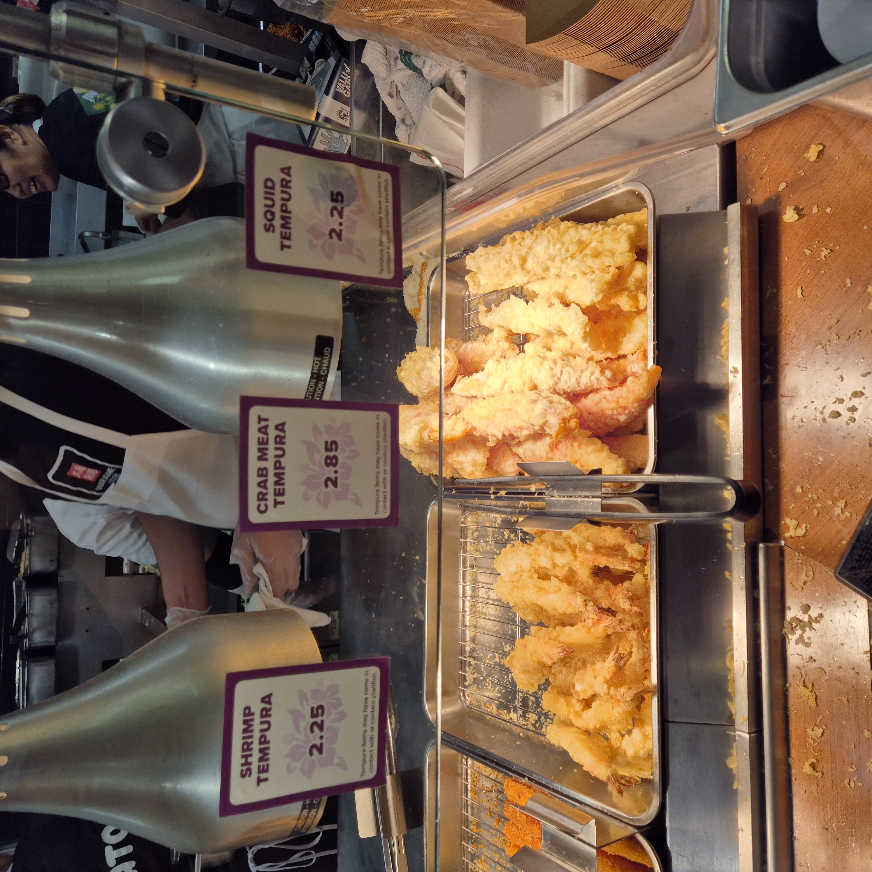 덴뿌라의 종류입니다.종류가 많죠 우동그릇을 들고 옆으로 옮겨가면서 먹고 싶은 덴뿌라를 접시에 담으시면 됩니다.