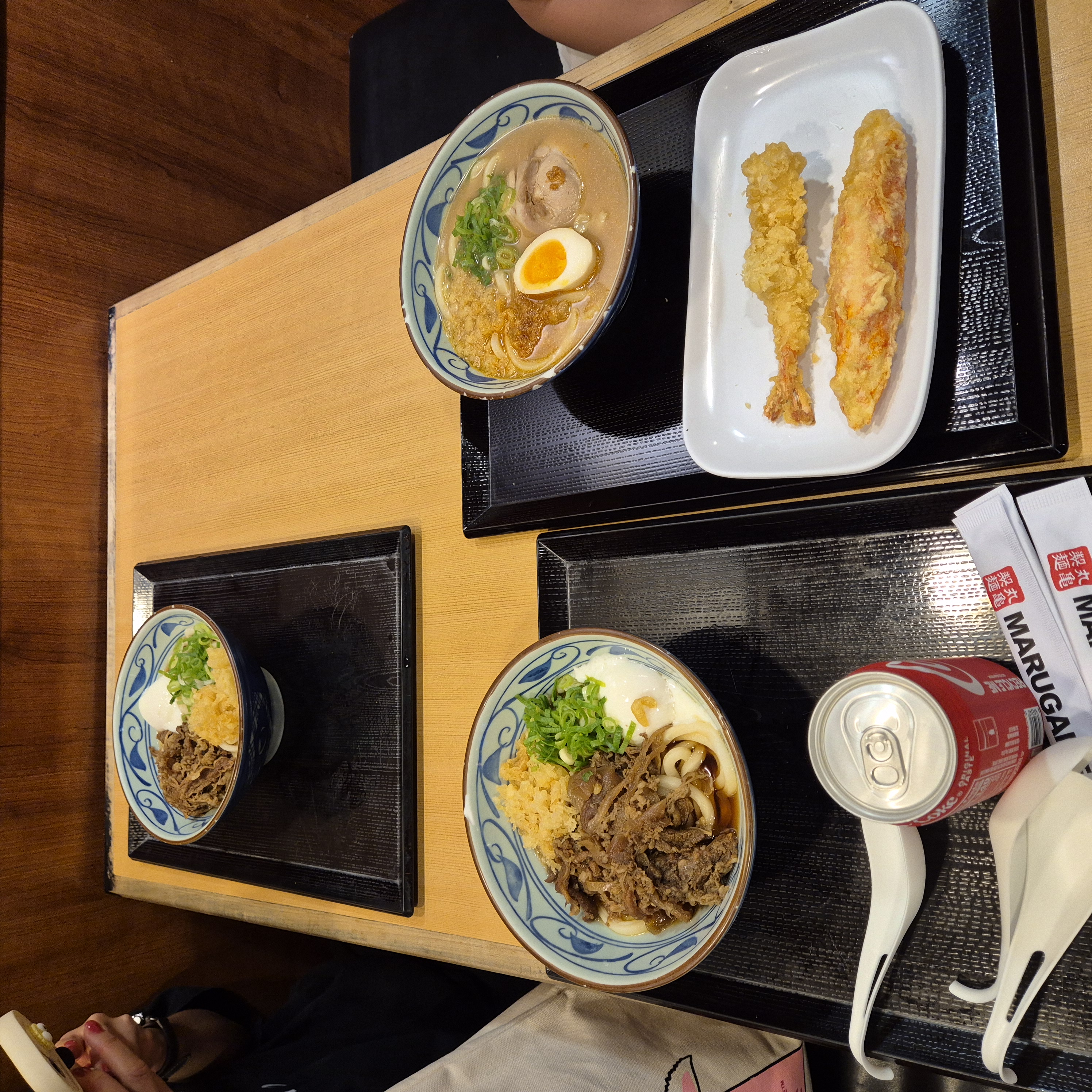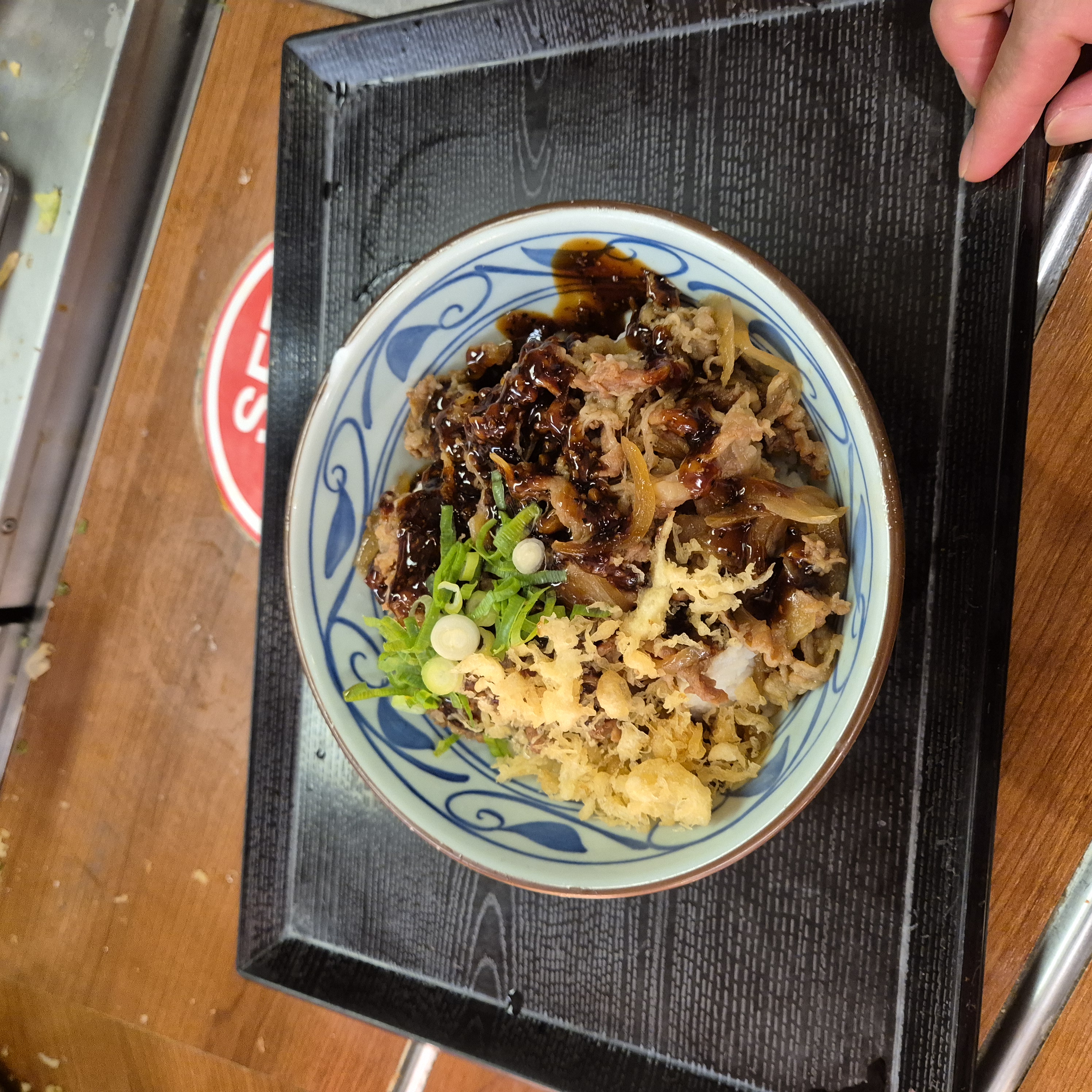 테이블에 앉아서 우동 규동 덴뿌라 맛있게 먹었습니다. 식사시간이 10분~20분 사이라 테이블 회전이 아주빨랐습니다. 우동면은 쫄깃하고 튀김은 바삭하고 맛이 좋았어요 무엇보다 레귤러였는데도 배가 불러 푸짐한 양에 한번더 놀랐습니다.