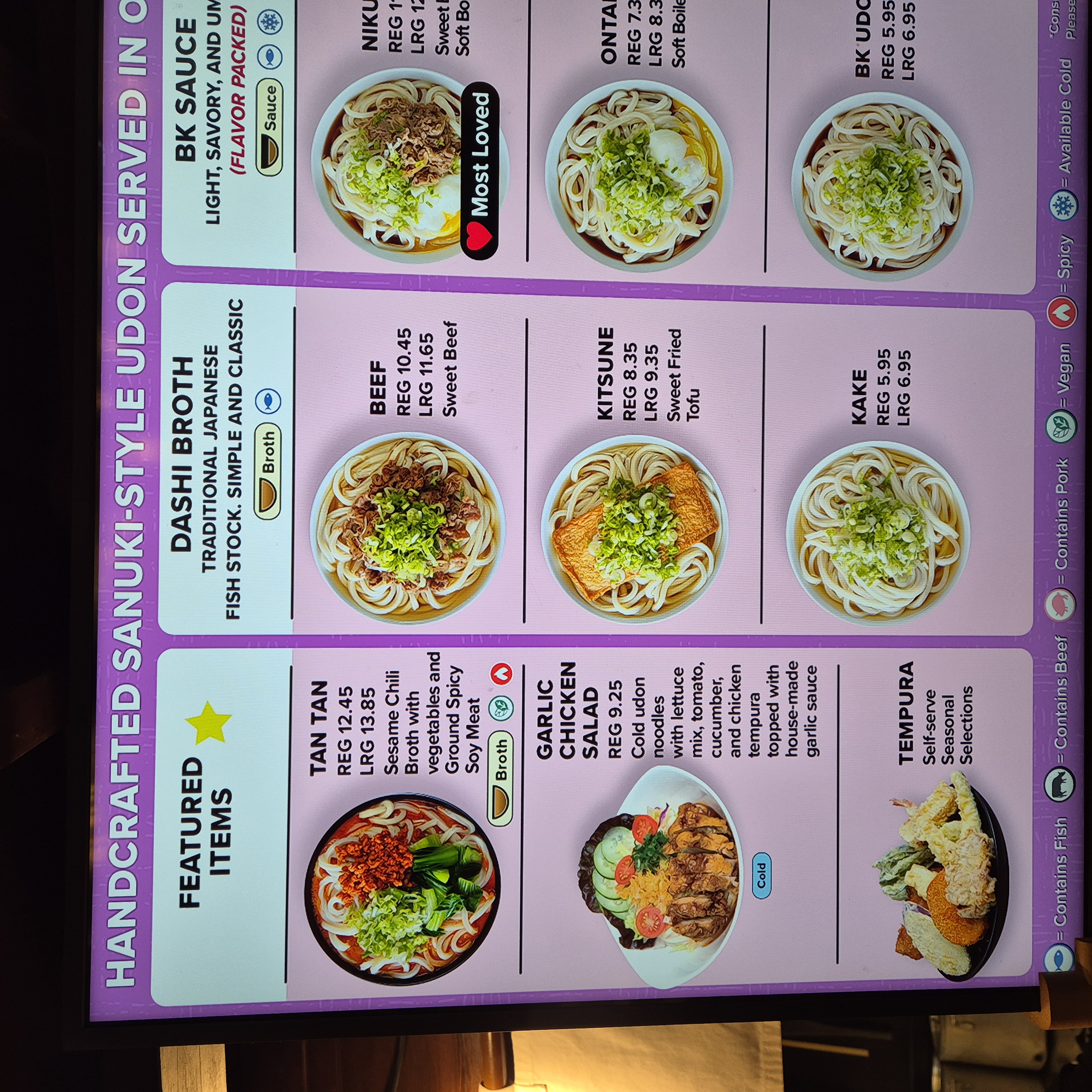우동 사이즈는 regular 레귤러 , lage 라지 두가지가 있습니다. 보통 대식가가 아니라면 레귤러 + 덴뿌라 2개 추천드립니다. 우동이 레귤러라도 그릇이 커서 양이 생각보다 많아요