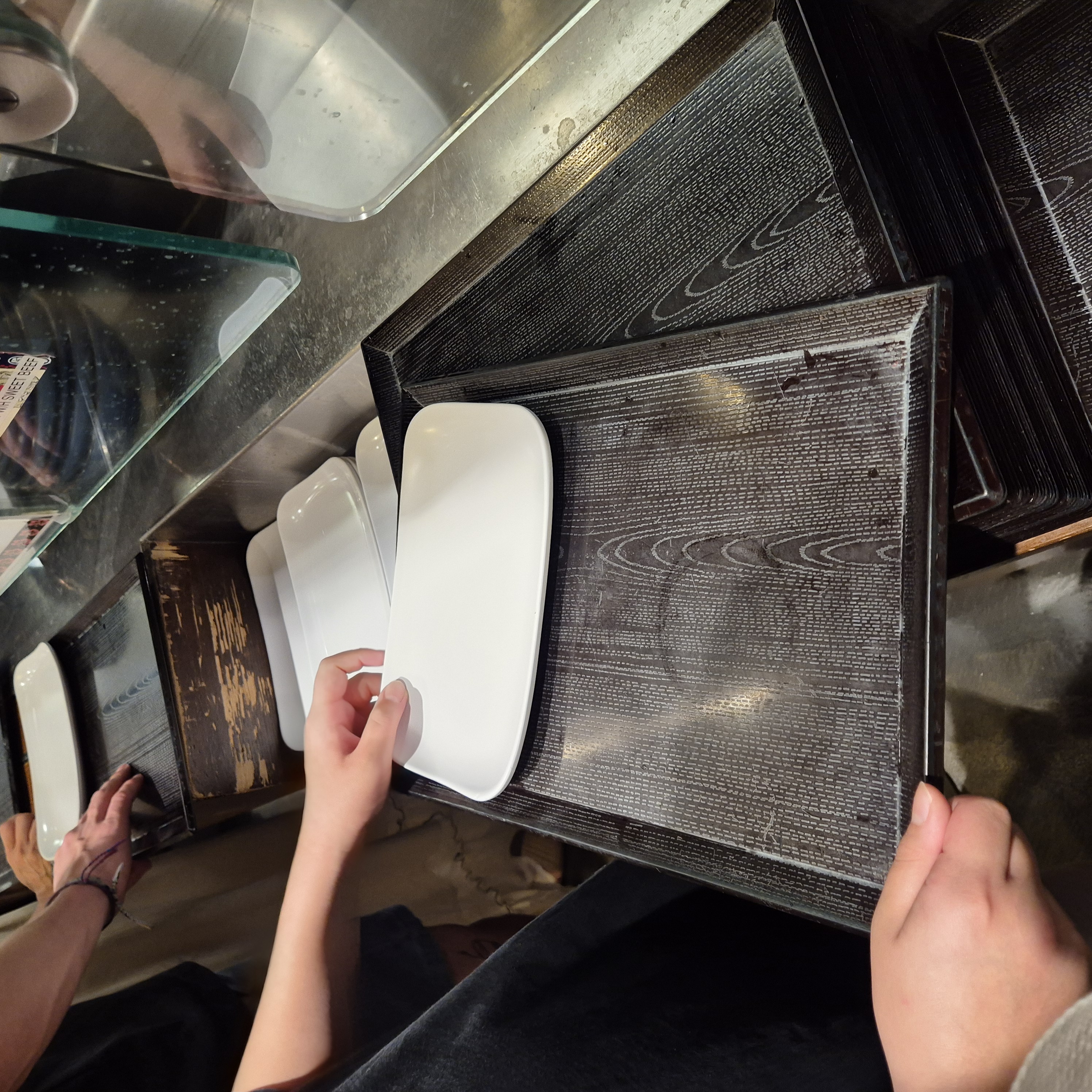 쟁반옆 사각접시는 튀김류 덴뿌라를 담을경우에만 챙기시면 됩니다. 한사람당 하나씩 ~ 생각보다